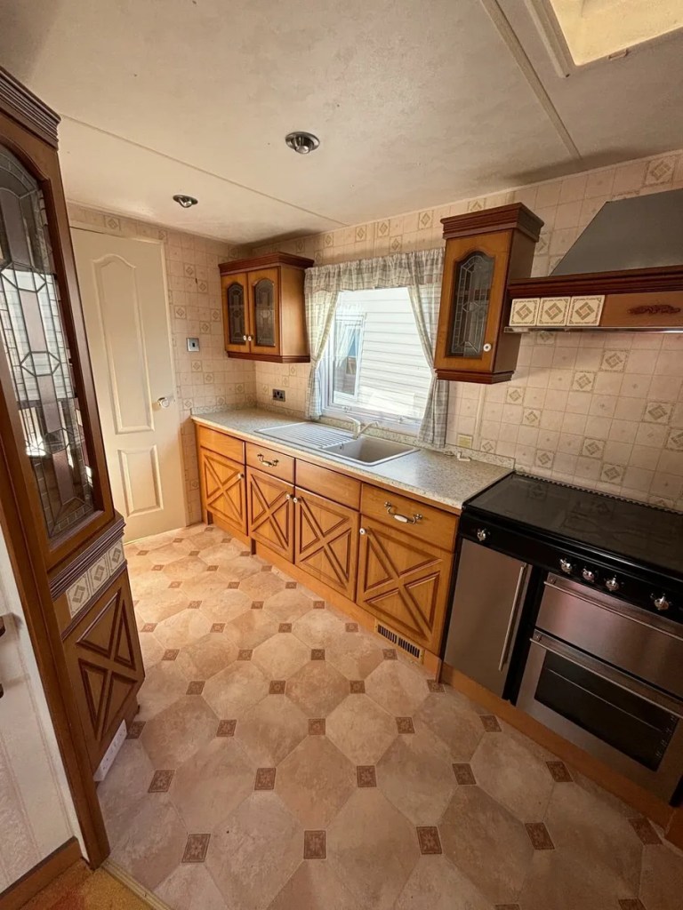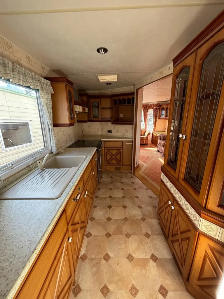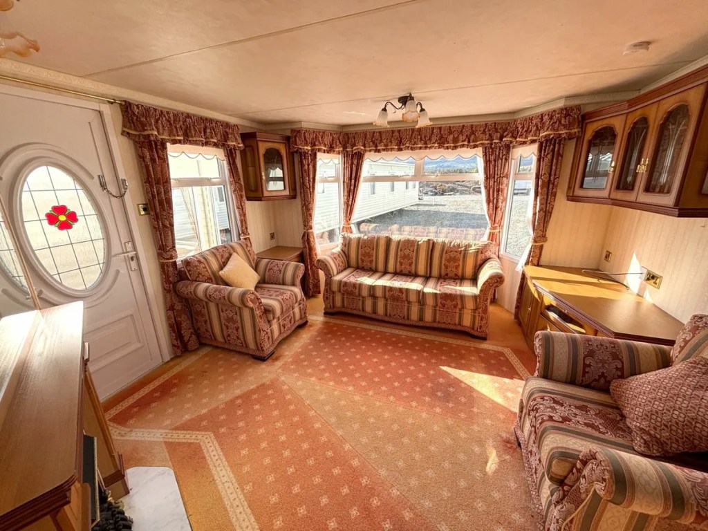 Fantastic condition throughout. Full winter pack including double glazed windows and gas central heating, Chassis in good condition, Fully insulated for all year round living including underfloor. Over 8 foot high ceilings throughout. 2 bedrooms, 1 double and 1 twin room. Large open plan living room with dining space just across from the fully fitted kitchen.