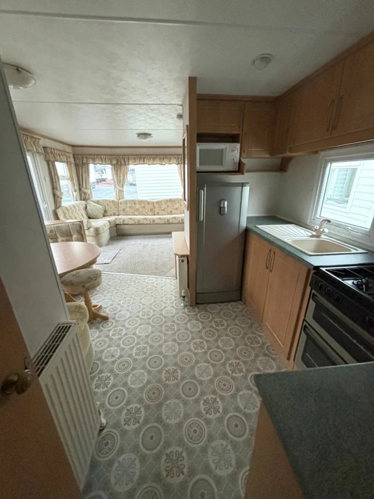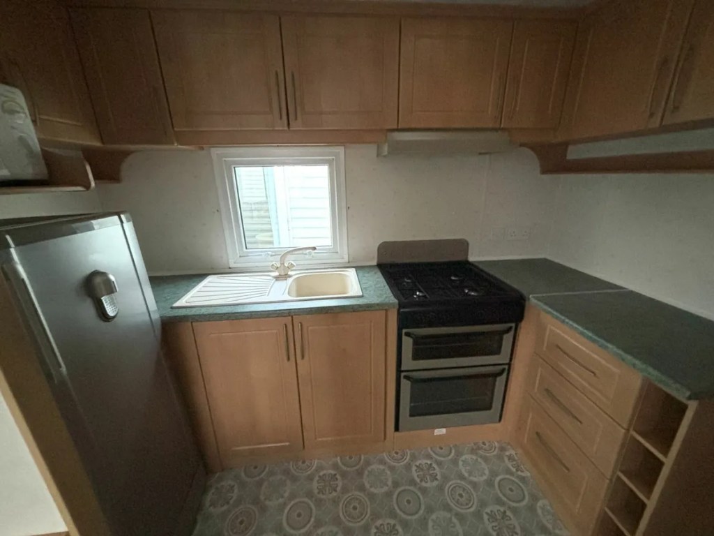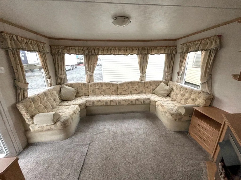 33 x 12 Elite mobile home in good condition, featuring full winter pack with double glazed windows and gas central heating.