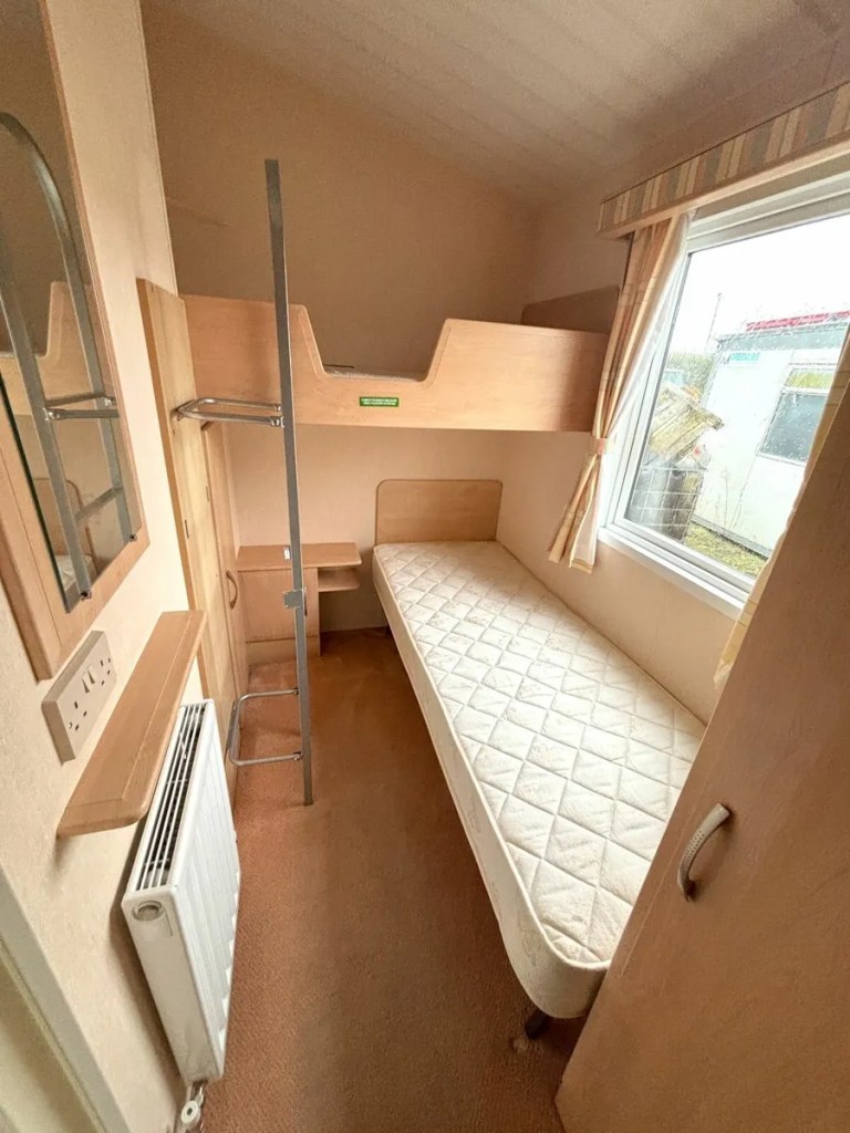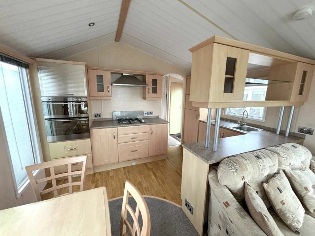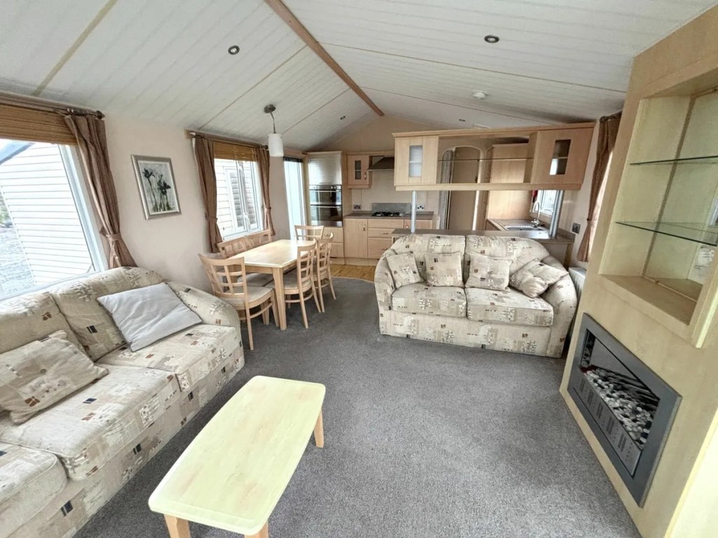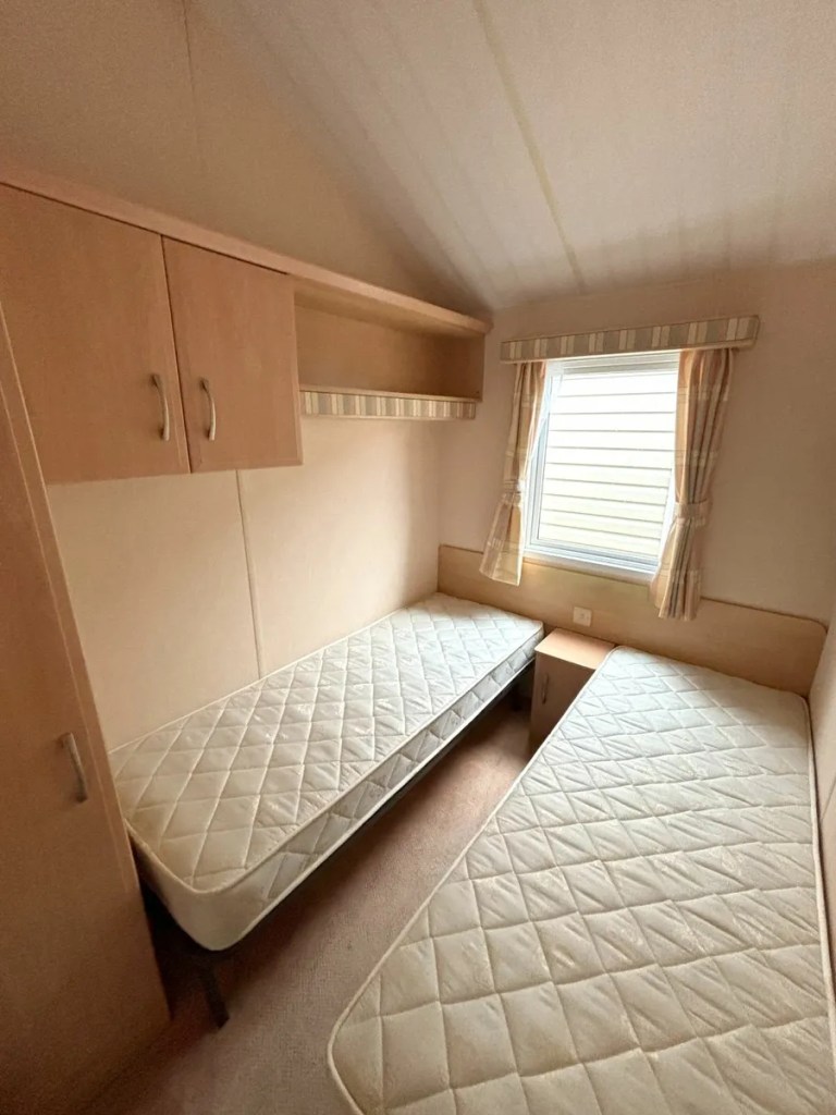 Mobile home in very good condition with full winter pack, double glazed windows, and gas central heating. Features include galvanized chassis, pan-tiled roof, and full insulation for year-round living, including underfloor heating and extra thick walls. It has over 9-foot high ceilings, 3 bedrooms (1 double, 1 twin, and 1 bunk room), a large open-plan living room with dining area, and a fully fitted kitchen with an integrated fridge-freezer. There’s a shower room with a basin and toilet, plus an extra toilet in the hall. Fully furnished and ready to move in. All furniture included. Video available via WhatsApp/email. All appliances serviced and guaranteed (Gas Boiler/Cooker/Fire). Free delivery within 100km (additional distance at a discounted rate).