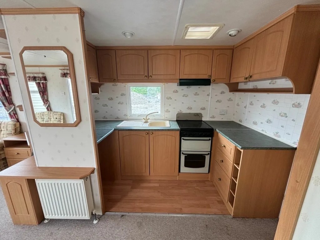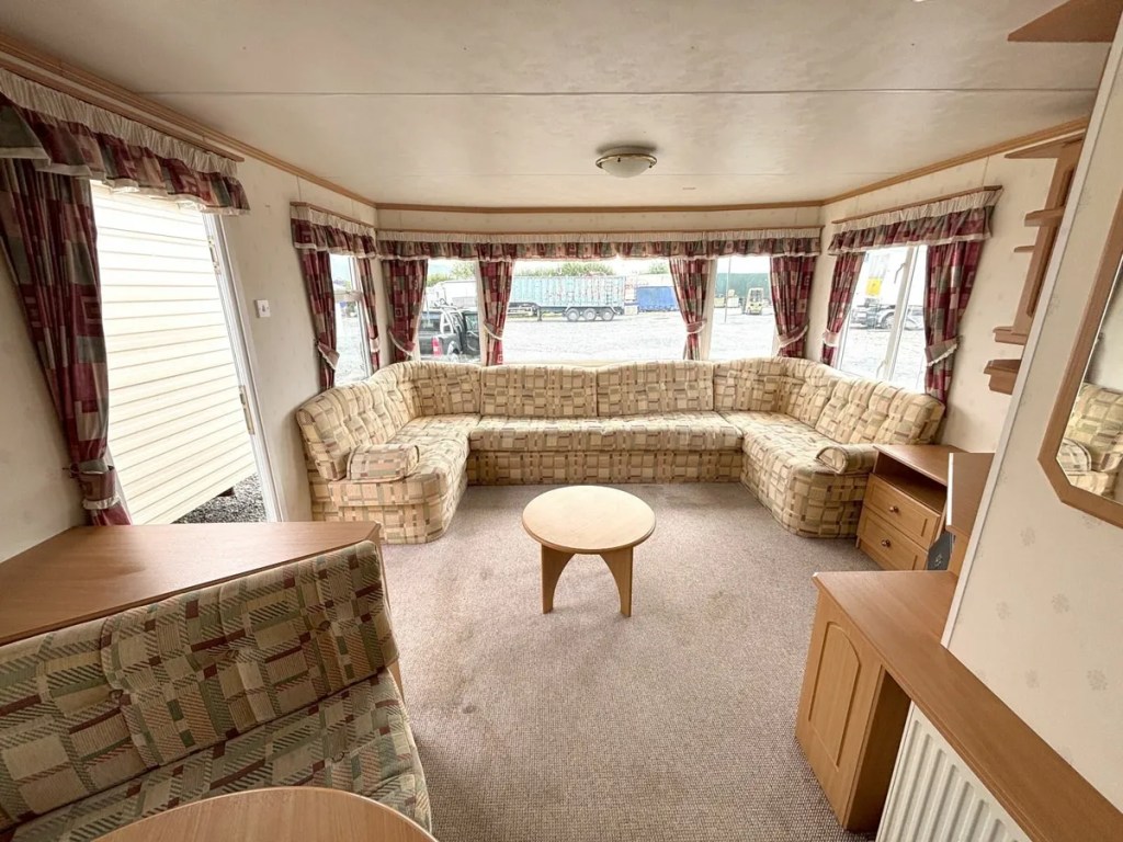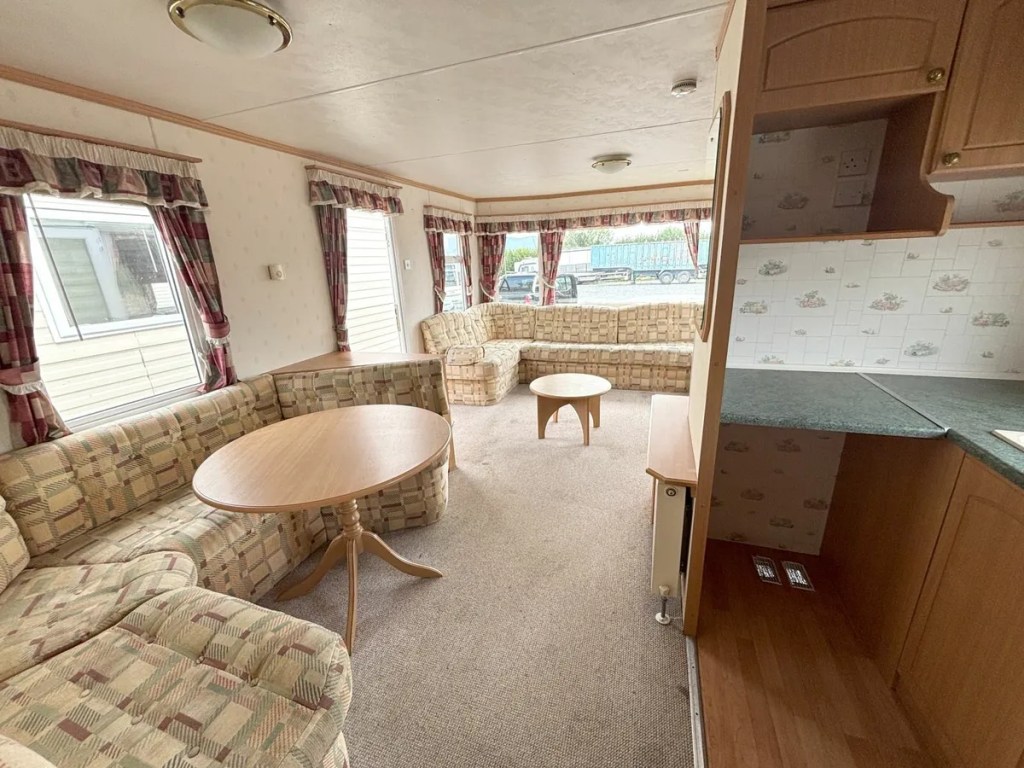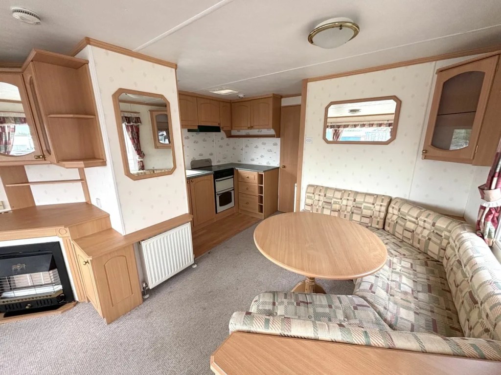 Over 7.5-foot ceilings throughout. Features 3 bedrooms: 1 double, 1 single, and 1 twin. Large open plan living area with dining space next to a fitted kitchen. Includes a shower room with a basin and toilet. Fully furnished and ready to use. Video available via WhatsApp or email. All services are certified and guaranteed (Gas Boiler/Cooker/Fire). Free delivery up to 100km. This mobile home is on wheels. Delivery does not include blocking. Located 40 minutes north of Dublin airport, between Dundalk and Newry, off Exit 20.