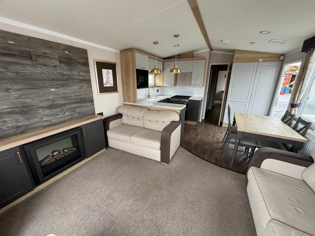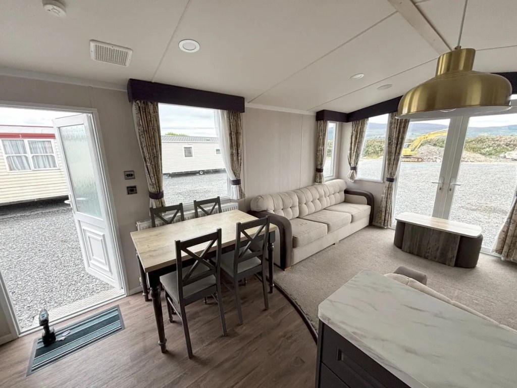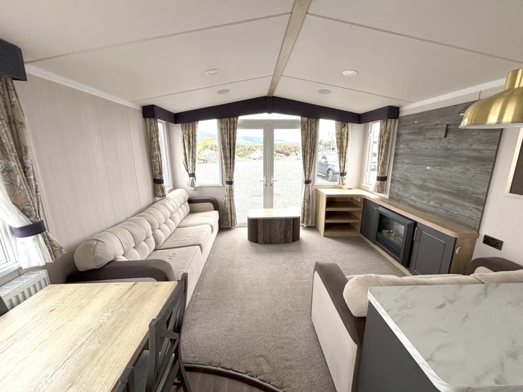40 x 12 Swift Provence mobile home, 2020 model, in fantastic condition with double doors. Features include a full winter pack, double glazing, gas central heating, a galvanised chassis, and a pan-tiled roof.