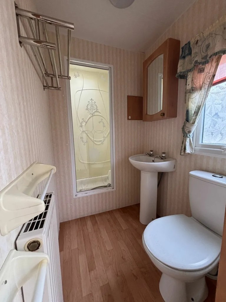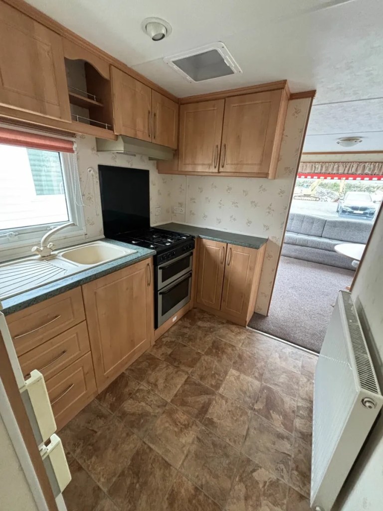 29 x 12 Pemberton Elite. Good condition throughout. Full winter pack including double glazed windows & gas central heating. Chassis in good condition, Fully insulated for all year round living including underfloor. Over 7 foot high ceilings throughout. 2 bedrooms, 1 double and 1 twin room. Large open plan living room with dining space just across from the fully fitted kitchen. Shower room with basin and toilet. Fully furnished and ready to go. ALL FURNITURE INCLUDED.