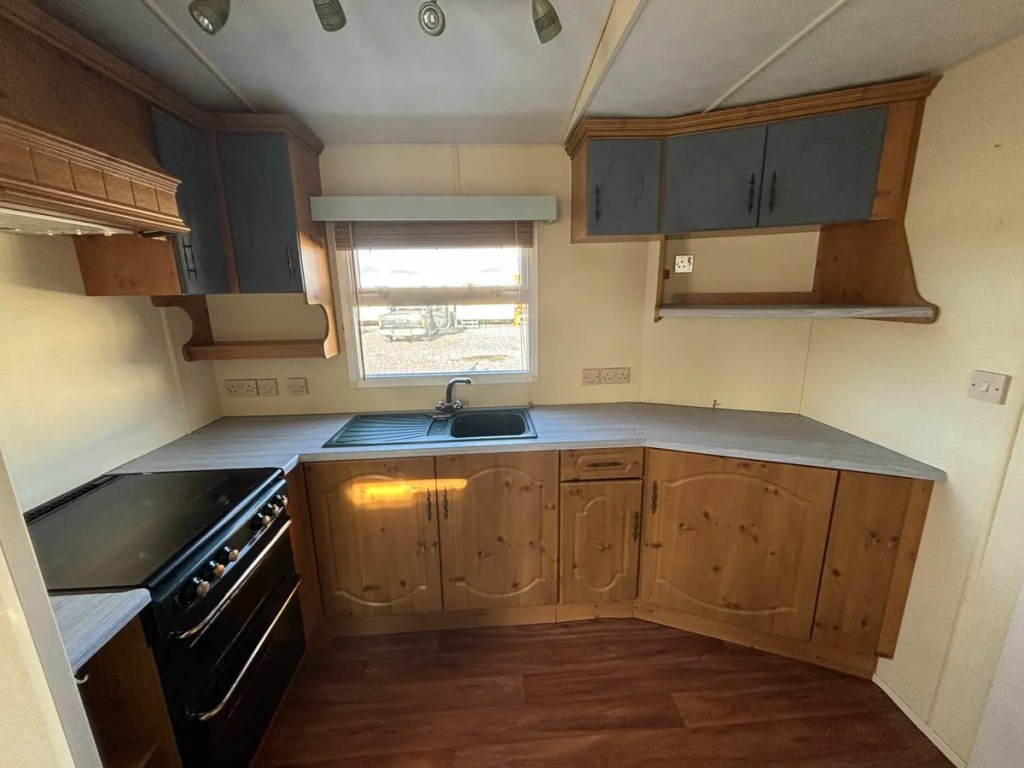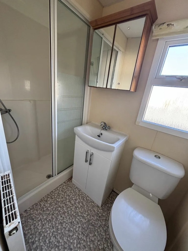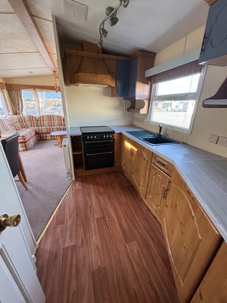 Very good condition mobile home featuring a full winter pack with double glazed windows and gas central heating, a pan tiled roof, and a galvanised chassis.