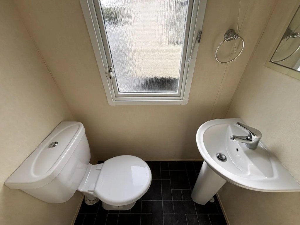 Bathroom: Main shower room with basin and toilet, plus an extra separate toilet.