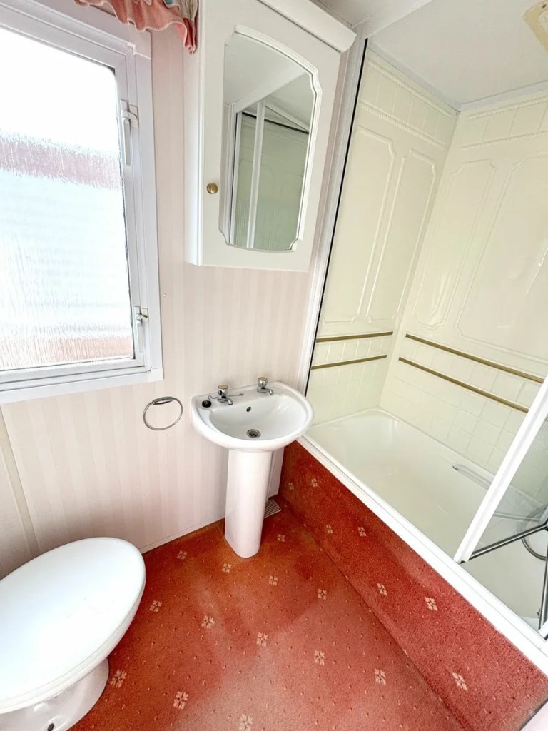 Shower room with basin and toilet, plus an extra toilet in the master bedroom.